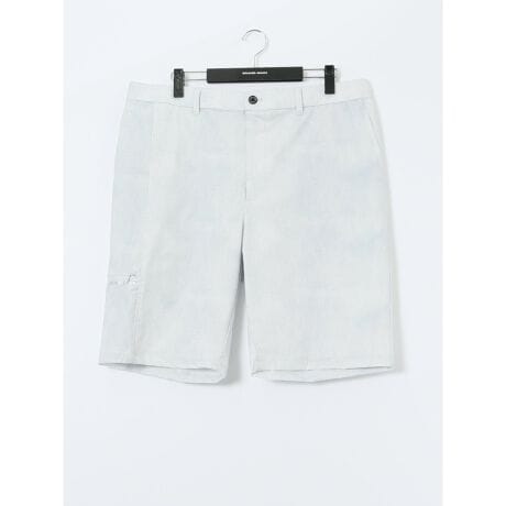 ゴルフ場のグリーンに映える、ハーフパンツです。デニム調のグラフィックプリントと、ティーやマーカーの収納に便利な右裾のファスナーポケットがポイント。ウエストはバックシャーリング、フロントボタン&ファスナー、ベルト通し付き、前×2、後×1ポケット付きです。天候が不安定な春夏シーズンの小雨対策におすすめです。