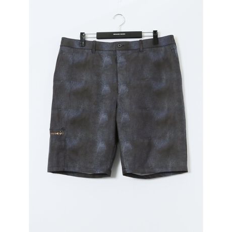 ゴルフ場のグリーンに映える、ハーフパンツです。デニム調のグラフィックプリントと、ティーやマーカーの収納に便利な右裾のファスナーポケットがポイント。ウエストはバックシャーリング、フロントボタン&ファスナー、ベルト通し付き、前×2、後×1ポケット付きです。天候が不安定な春夏シーズンの小雨対策におすすめです。