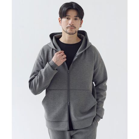 普段の装いにライトアウター感覚でプラスしていただくだけでも重宝する一着ですが、同素材のテックパンツと上下揃えるアクティブな印象のセットアップコーデもおすすめです。スウェット生地であれば部屋着感が出てしまいがちなZIPパーカーとテックパンツの着こなしですが、品の良いハイポンチ生地とすっきりとしたシルエットによってラフになりすぎず、お洒落な抜け感が演出された大人顔のコーデに仕上げることができます。