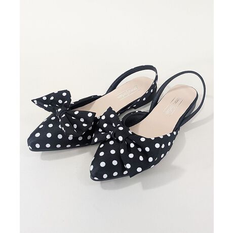 水玉 チェック柄 千鳥格子 リボンミュール ヒール ポインテッド トゥ バックストラップパンプス