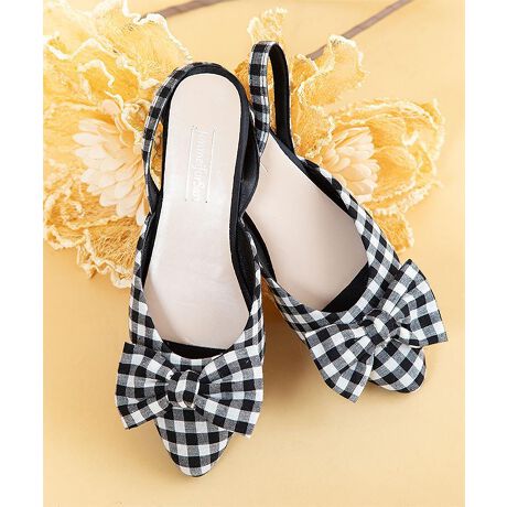 水玉 チェック柄 千鳥格子 リボンミュール ヒール ポインテッド トゥ バックストラップパンプス