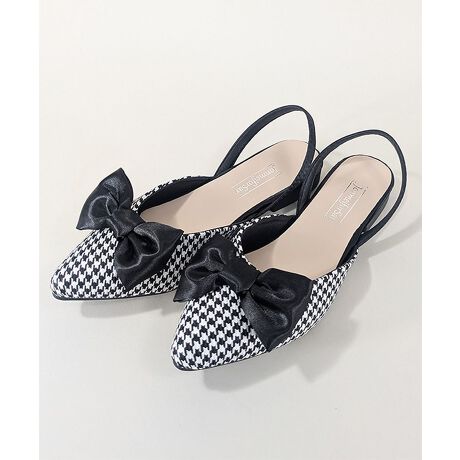 水玉 チェック柄 千鳥格子 リボンミュール ヒール ポインテッド トゥ バックストラップパンプス