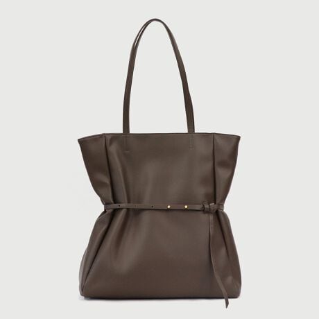 フロントのベルトデザインがポイントのトートバッグ。