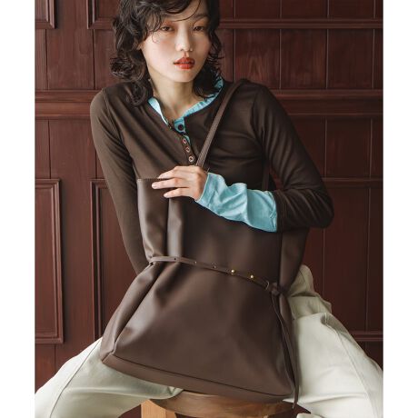・柔らかな質感のスプリットレザーを使用し、シンプルながらもベルトで絞った立体的なシルエットが印象的。