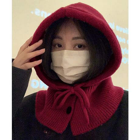 フード付きニットマフラー韓国風バラクラバ