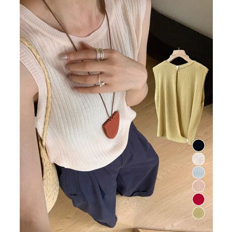 サマーニットタンクトップ 背中開き 夏服
