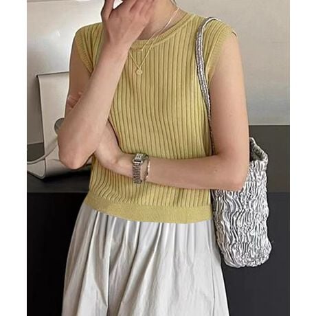 サマーニットタンクトップ 背中開き 夏服