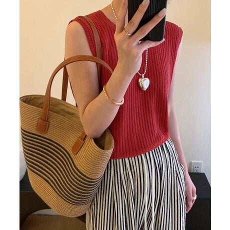 バックオープンデザインがさりげなく色気を引き立てる、リブニットタンクトップ。