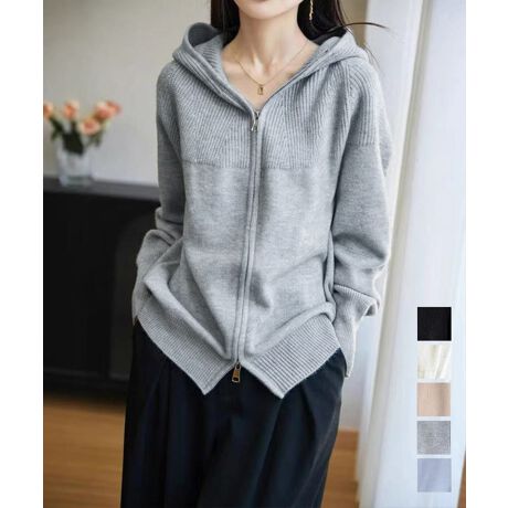 柔らかな風合いが魅力のジップアップニットパーカー。