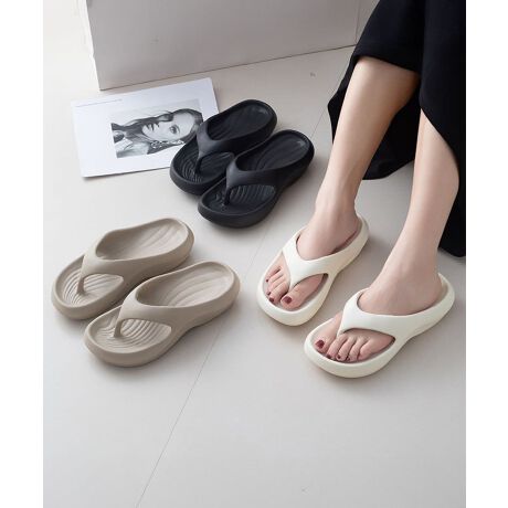シンプルで洗練されたデザインの厚底トングサンダル。