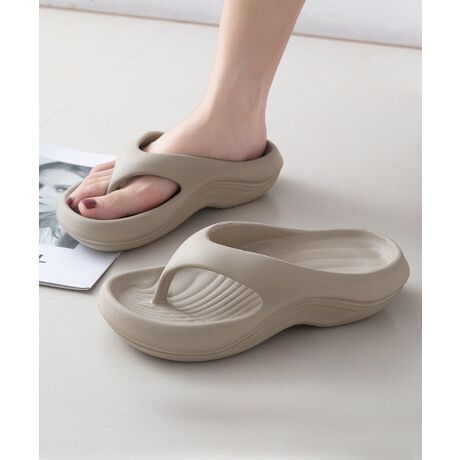シンプルで洗練されたデザインの厚底トングサンダル。