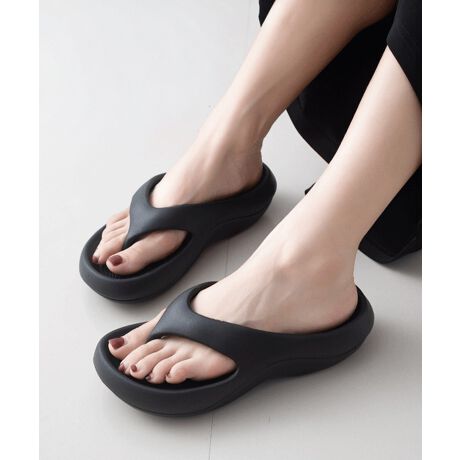 シンプルで洗練されたデザインの厚底トングサンダル。