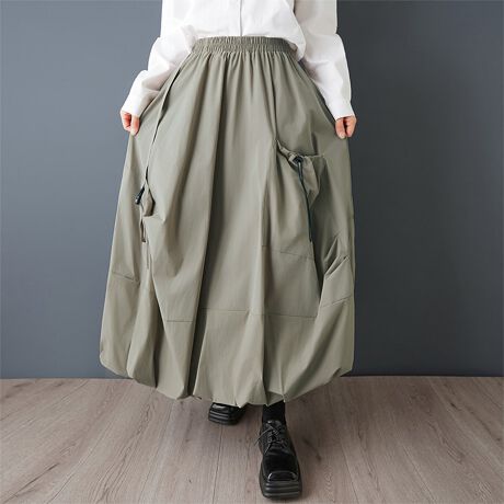 ギャザー入りの裾が特徴的なバルーンシルエットのロングスカートです。