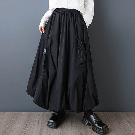 ギャザー入りの裾が特徴的なバルーンシルエットのロングスカートです。