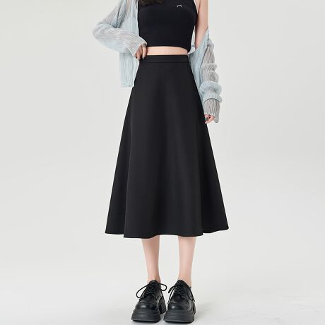 すっきりとしたAラインシルエットが魅力のミディ丈スカートです。