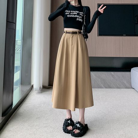 プリーツが縦ラインを強調し、動きに合わせて揺れるマキシ丈スカートです。