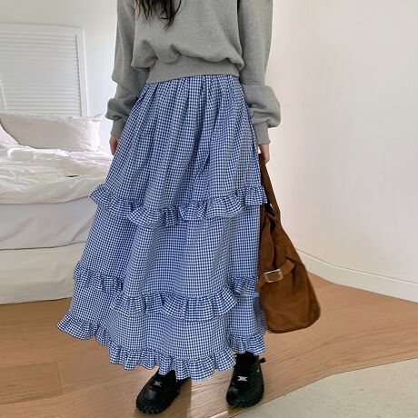 ギンガムチェック柄が目を惹くティアードフリルスカートです。