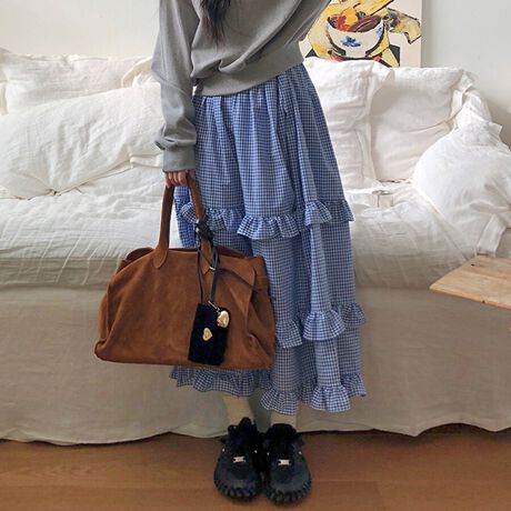 ギンガムチェック柄が目を惹くティアードフリルスカートです。