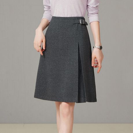 サイドのバックルがアクセントになる、上品な膝丈スカート。