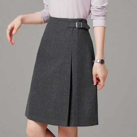 サイドのバックルがアクセントになる、上品な膝丈スカート。