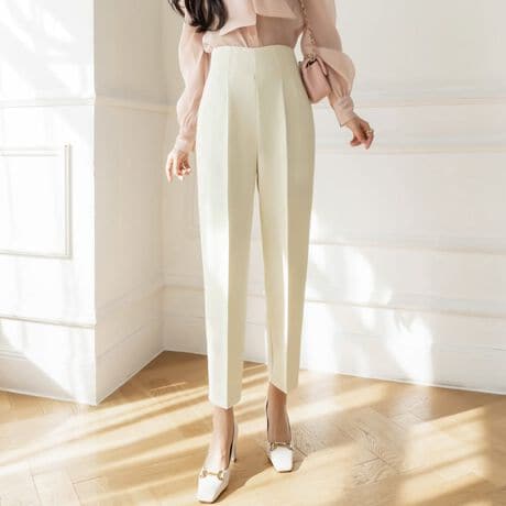 ハイウエスト仕様で脚長効果があり、腰まわりもすっきりと見える構成です。