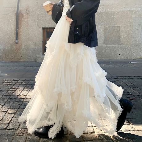 ティアード×シアー素材が映えるロング丈スカートです。