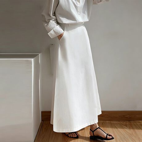 裾にはスリットが入り、歩きやすく軽やかな印象をプラスします。