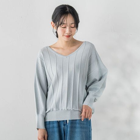 ラメドルマンVネックニット