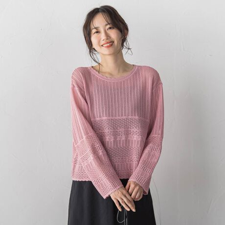 繊細なレース柄がポイントのニット。