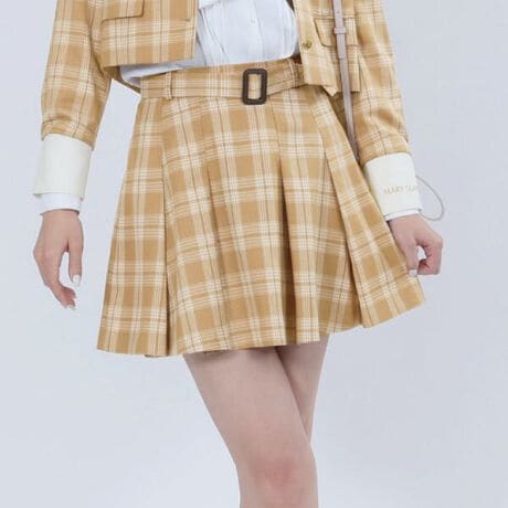 ふわりと広がるフレアミニスカート。◆ポイント・ベルトに同色系のロゴ刺繍・合皮のベルトバックル・左脇ファスナー開き・BACKのみゴム・ショートパンツ型の裏地付き◆コーディネート「クラシカル ジャケット」とのセットアップでレトロな雰囲気も楽しめます。[型番:226-201901]