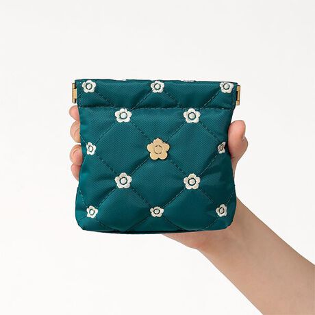 ダイヤチェックのキルトにデイジー刺繍を散りばめたポーチシリーズ。◆シリーズ共通ポイント・デイジー金具をON・柔らかく、光沢感のある生地・裏地は総柄デイジーのプリント生地◆アイテム説明(バネクチポーチ)・ワンタッチで簡単に開閉可能・口紅(目安:H8.5×W1.5×D1.5cm)などの小物を入れるのに便利なサイズ感※ポケット無し[型番:226-861821]