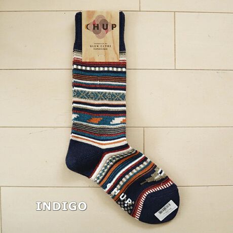 履き心地の良さとオリジナルで素敵な柄が大人気の「チュプ」。現在製造されていないイタリア製ヴィンテージの特殊な編み機を使用し、1目1目ゆっくりと編み上げているため他にはない色鮮やかなニットの風合いを表現。適度な厚みがあるので弾力があり心地良い履き心地です。デザイン柄が非常に複雑なため、1日の生産効率は通常の半分から3分の1程度と作れる量に限りがあります。アイヌ語で「太陽、月、天空の星々」を意味するCHUPは自然が生み出した彩りを丁寧に紡いで、再生糸(エコヤーン)を採用するなど地球環境にも配慮しています。生産は日本。厳選された設備のもと、熟練職人の手による丁寧で精錬されたモノ作りを心がけています。追加生産はなく、数量限定です。