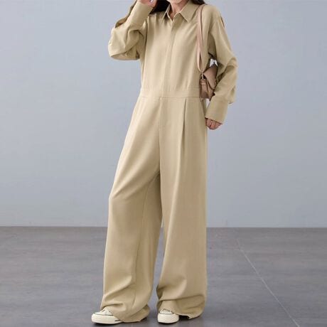 シャツ風のデザインが大人っぽい、長袖ジャンプスーツです。