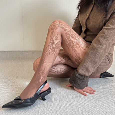 繊細な模様が脚をすっきり見せ、スカートやワンピースとの相性も抜群。