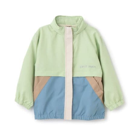配色の切り替えで個性を持たせたウィンドブレーカーです。フードは衿ぐりに収納できる設計になっており、その日の用途やコーデに合わせて変えられます。撥水加工をほどこしているため、雨の日のお出かけにもぴったり。裏地には通気性の良いメッシュ生地を使用しました。内側にお名前を記入できるタグつき。