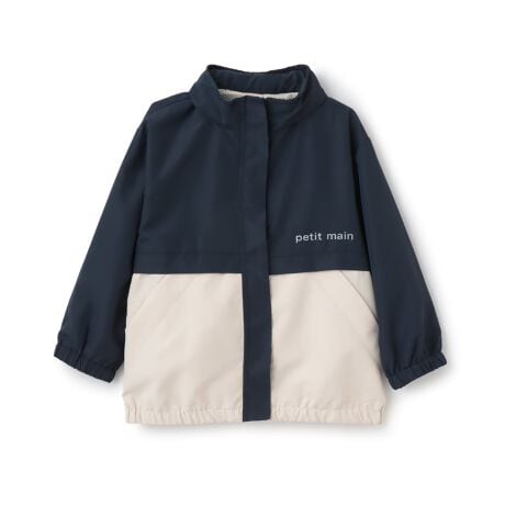 配色の切り替えで個性を持たせたウィンドブレーカーです。フードは衿ぐりに収納できる設計になっており、その日の用途やコーデに合わせて変えられます。撥水加工をほどこしているため、雨の日のお出かけにもぴったり。裏地には通気性の良いメッシュ生地を使用しました。内側にお名前を記入できるタグつき。