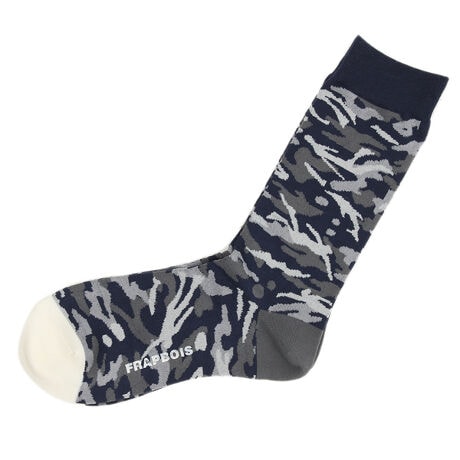 【素材】肌触りの良さと発色の良さが特徴の糸を使ったソックス。【デザイン】洋服でも使われている迷彩風のオリジナルの柄は泳ぐ人や海の生物がモチーフに隠れているブランドらしい遊びが効いています。カラフルでインパクトがありながらも迷彩調の柄はさり気ないワンポイントに最適です。Fサイズ:22.5〜24.5cm【ブランド情報】FRAPBOIS/フラボア2001年にブランドスタート。「大人げない大人の服」をコンセプトに、大人が着るリラックスしたデイリーウェアを提案するコレクションブランド。レディースとメンズのアイテムをご用意しています。