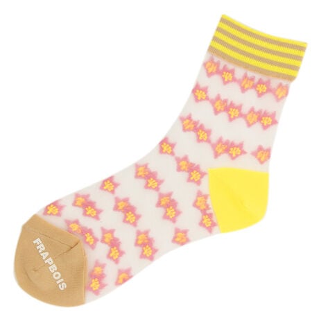 【素材】シアーで繊細な編みに立体的なカットモチーフが特徴のソックス。【デザイン】やや短めの丈はワンピースやスカートなどとも相性が良い点がポイント。シアーで繊細なベースに立体的なカットモチーフの柄がアクセントを出しています。桜の花びらをモチーフにした柄は柔らかで大人っぽい雰囲気に仕上がっています。Fサイズ:22.5〜24.5cm【ブランド情報】FRAPBOIS/フラボア2001年にブランドスタート。「大人げない大人の服」をコンセプトに、大人が着るリラックスしたデイリーウェアを提案するコレクションブランド。レディースとメンズのアイテムをご用意しています。