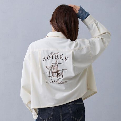 バック刺繍クロップドシャツ