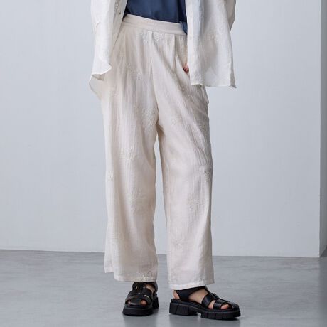 花柄の刺繍とスパンコール刺繍が大人なストレートパンツ。