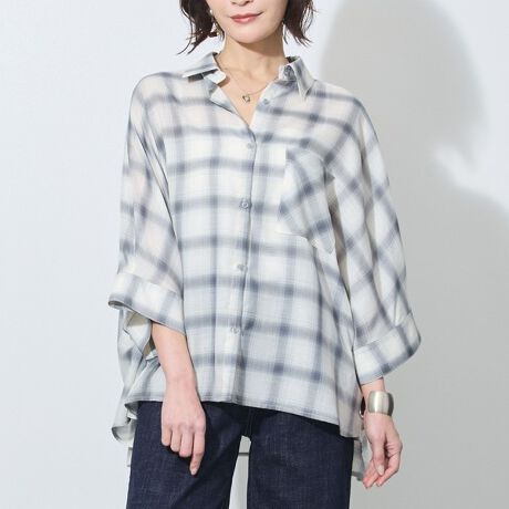 上品なオンブレーチェックが目を引くビッグシャツ。