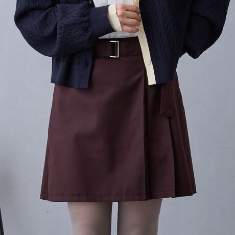 ラップ風デザインのミニプリーツスカート。