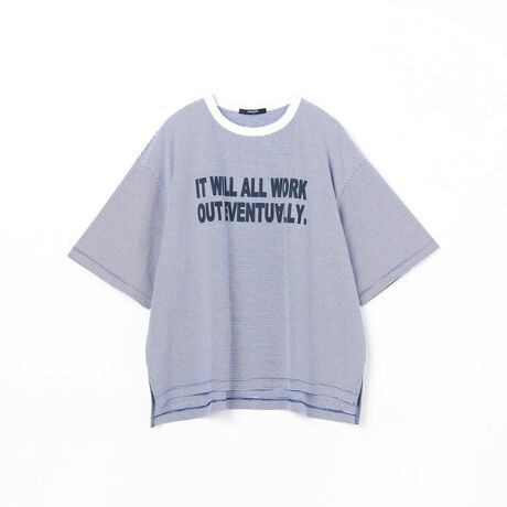 ミジンボーダーの生地を使った、クルーネックのロゴTシャツです。