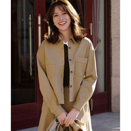 ショート丈でバランスが取りやすく、スタイルアップ効果も期待できるカジュアルチノシャツです。前立ての幅や大きめのポケットのディテールがアクセントとなり、一枚で着ても様になります。ジャケットライクできちんと感も持ち合わせているため、カジュアルすぎず大人の着こなしにマッチします。肌寒い日の羽織りとしてはもちろん、Tシャツやブラウスの上にサッと羽織るだけで、こなれた印象を演出できます。適度なレングス感で、スカート、パンツ、ワンピースなど、どんなボトムスとも相性が良く、着こなしの幅が広がります。 カラーは、どんなスタイルにも合わせやすい、上品で落ち着いた印象のベージュ(#033)の1色展開です。