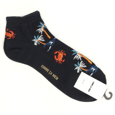 コムサメン カニとヤシの木柄 アンクル丈ソックス