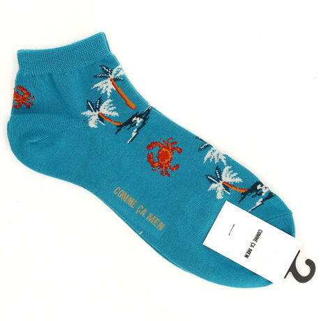 コムサメン カニとヤシの木柄 アンクル丈ソックス