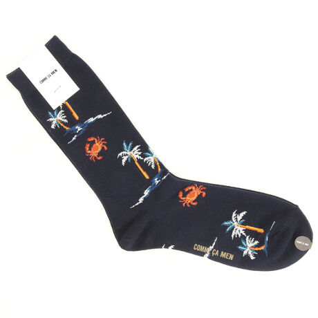 コムサメン カニとヤシの木柄 クルー丈ソックス