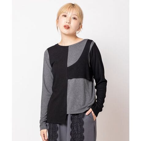 バイカラーとビスチェモチーフの切替デザインが、スタイリングにモードなアクセントを添える。