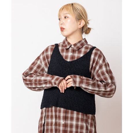 重ねるだけで新鮮なスタイリングが完成するビスチェは、ニット素材で抜け感を演出。