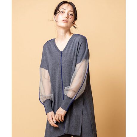 気張らないニットアップに、センシュアルなシアースリーブで女性らしさをひとさじ。